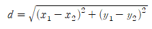 return sqrt(pow(x1-x2, 2)+pow(y1-y2, 2));